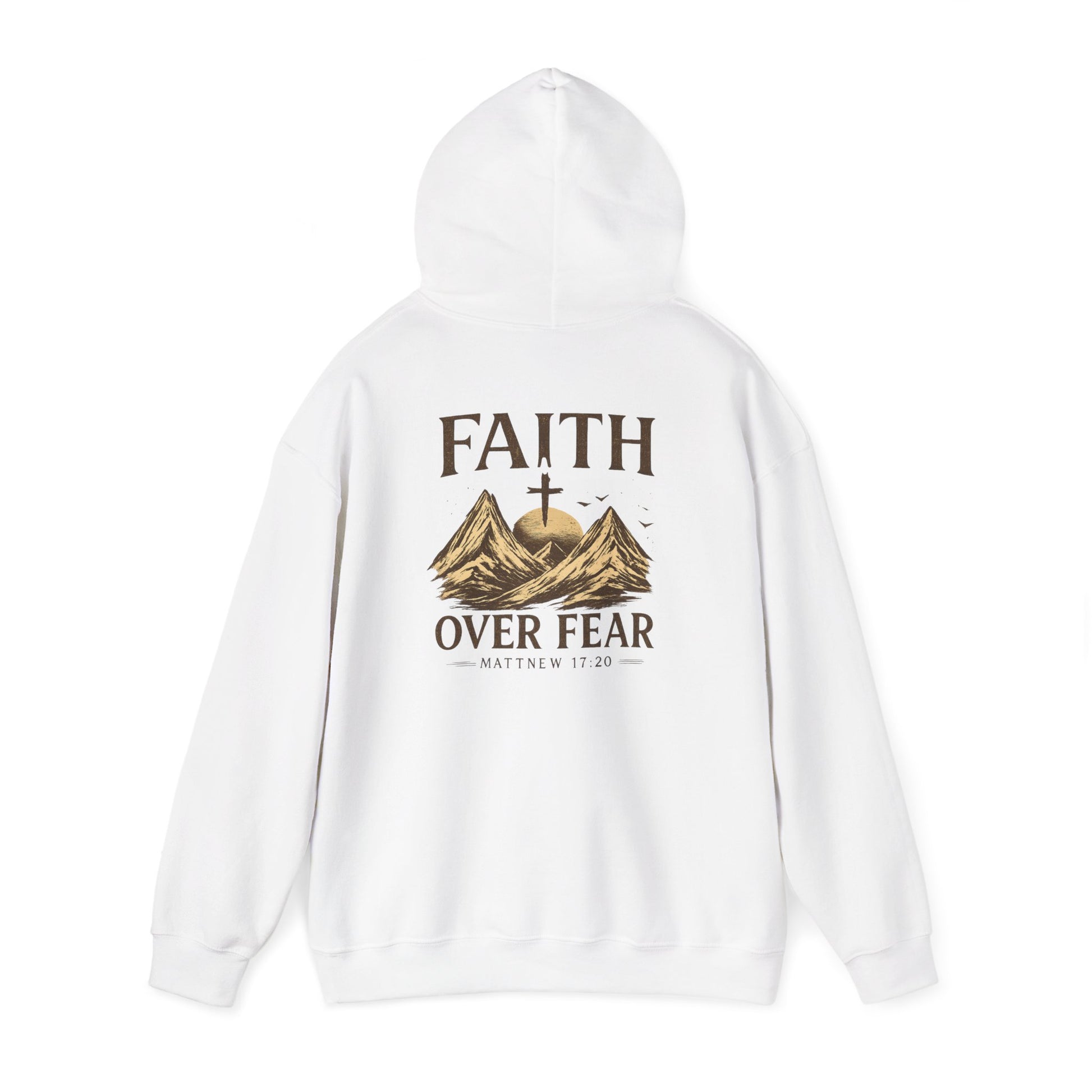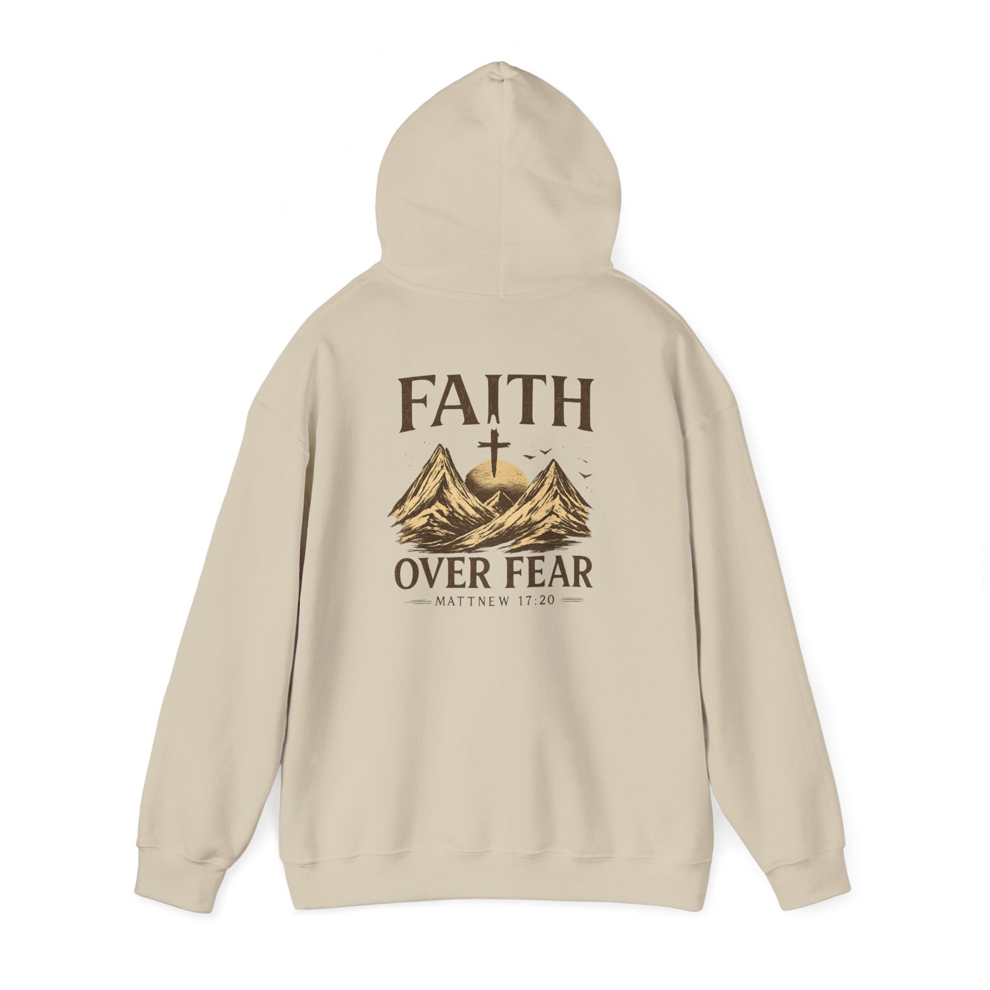Faith Over Fear Hoodie — Christian Mountain Cross Sweatshirt (Matthew 17:20)